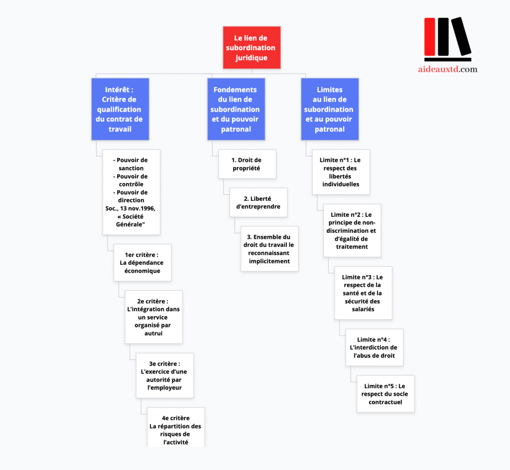 Ce sujet pourrait également donner lieu à une dissertation. Vous pourriez alors vous inspirer de ce cours et évoquer la définition et la caractérisation du lien de subordination avant d’évoquer les limites du pouvoir patronal.